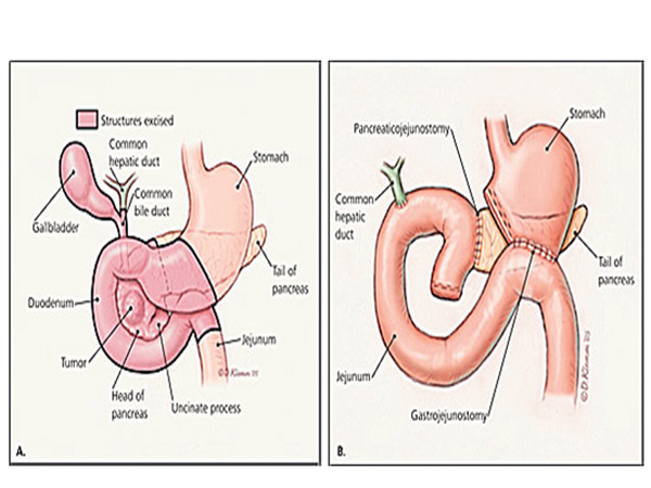 Pancreatic tumours are seen in the head of pancreas more often (75%). The patients usually develop obstructive jaundice along with itching and clay coloured stools. These patients benefit from surgery, if diagnosed and treated early. They require a major operation called Whippple’s operation and its various modifications. This is an operation done by few surgeons especially those interested in this field. The operation usually takes 4-6 hours. The results and outcome of these procedures have gradually improved in specialized units. This is mainly due to the experience and modern aggressive intensive care using latest technical gadgets. Pancreatic tumours affecting the body and tail of pancreas are not very common and are often detected late due to minimal symptoms.